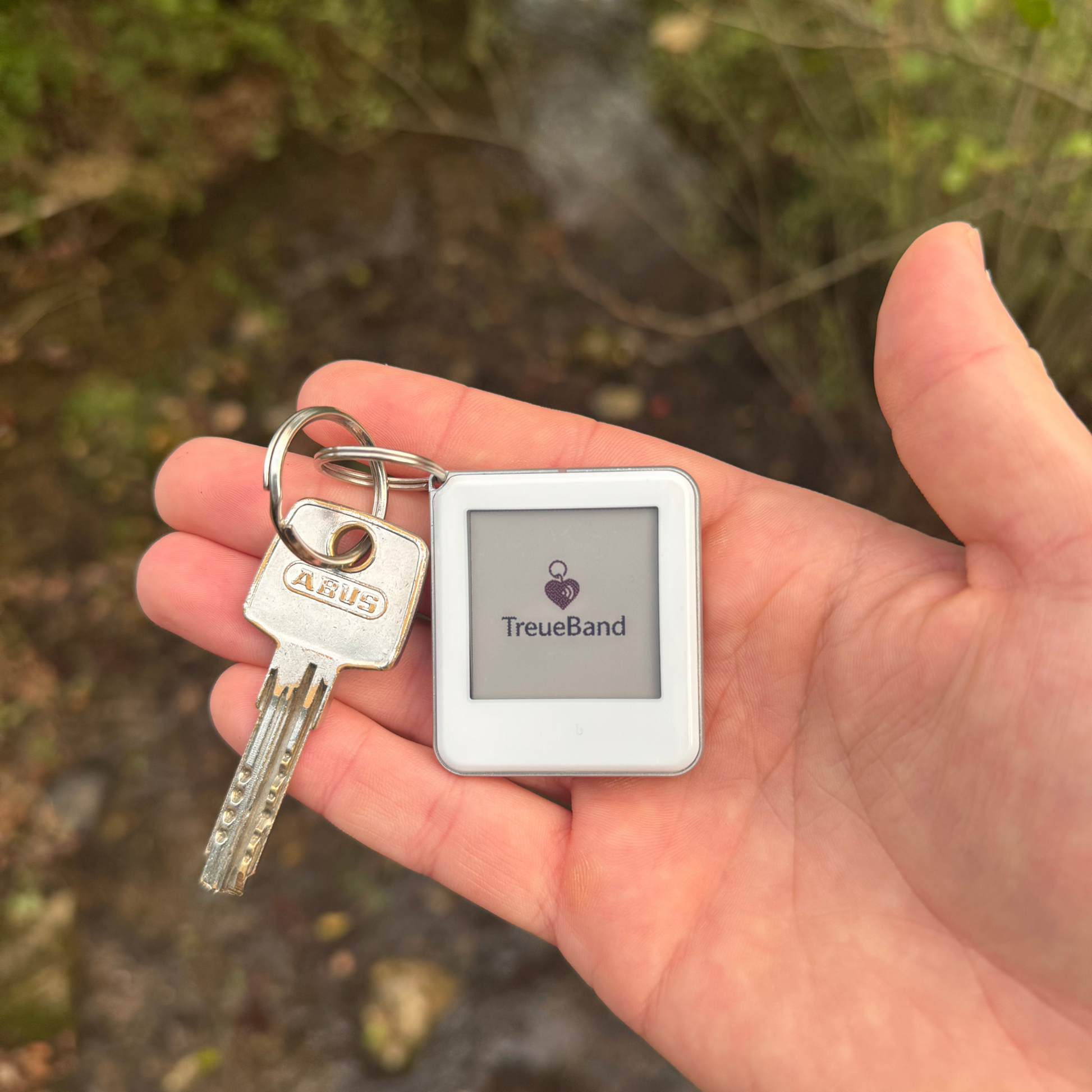 Alltagsspritzer & Regen sind kein Problem. TreueTag™ ist stabil gebaut und für den Schlüsselbund gemacht.